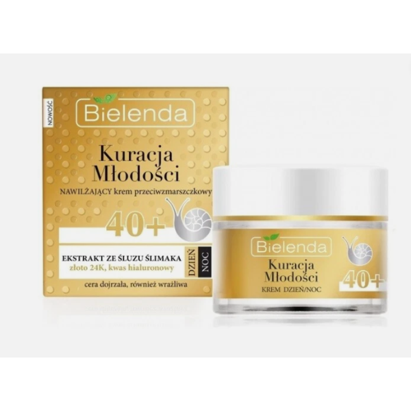 Give your skin the care it deserves with Bielenda Youth Therapy 40+, a deeply moisturizing anti-wrinkle cream designed for mature and sensitive skin. This luxurious day and night cream combines the regenerative power of snail mucin, the anti-aging properties of 24K gold, and the intense hydration of hyaluronic acid. It visibly reduces fine lines, firms the skin, and restores a youthful glow. Perfect for daily use, its lightweight texture absorbs quickly without leaving a greasy residue.