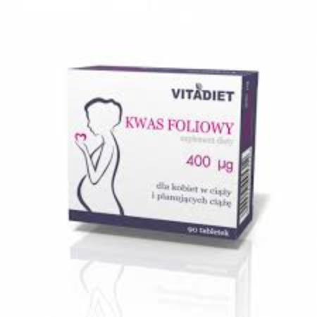 Vitadiet Folic Acid 400 µg is a dietary supplement specially formulated for women who are pregnant or planning to become pregnant. Folic acid plays a crucial role in supporting proper fetal development, particularly during the early stages of pregnancy, by contributing to the normal development of the neural tube and reducing the risk of certain birth defects.