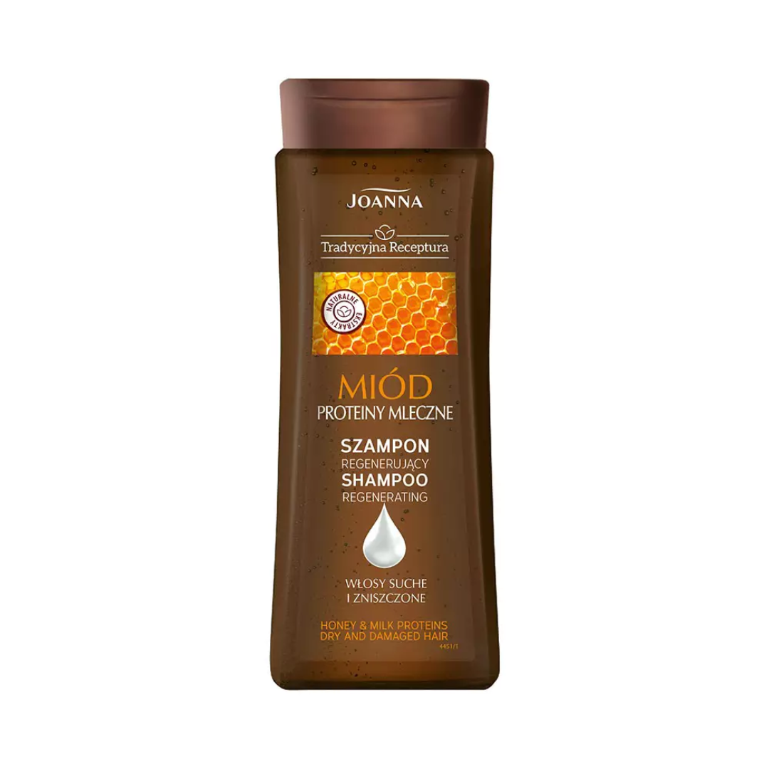 Joanna Tradycyjna Receptura (Traditional Recipe) Regenerating Shampoo with Honey and Milk Proteins is a deeply nourishing formula for dry and damaged hair. Inspired by traditional natural remedies, it uses the moisturizing and softening power of honey along with milk proteins, which help to rebuild and protect the hair structure.