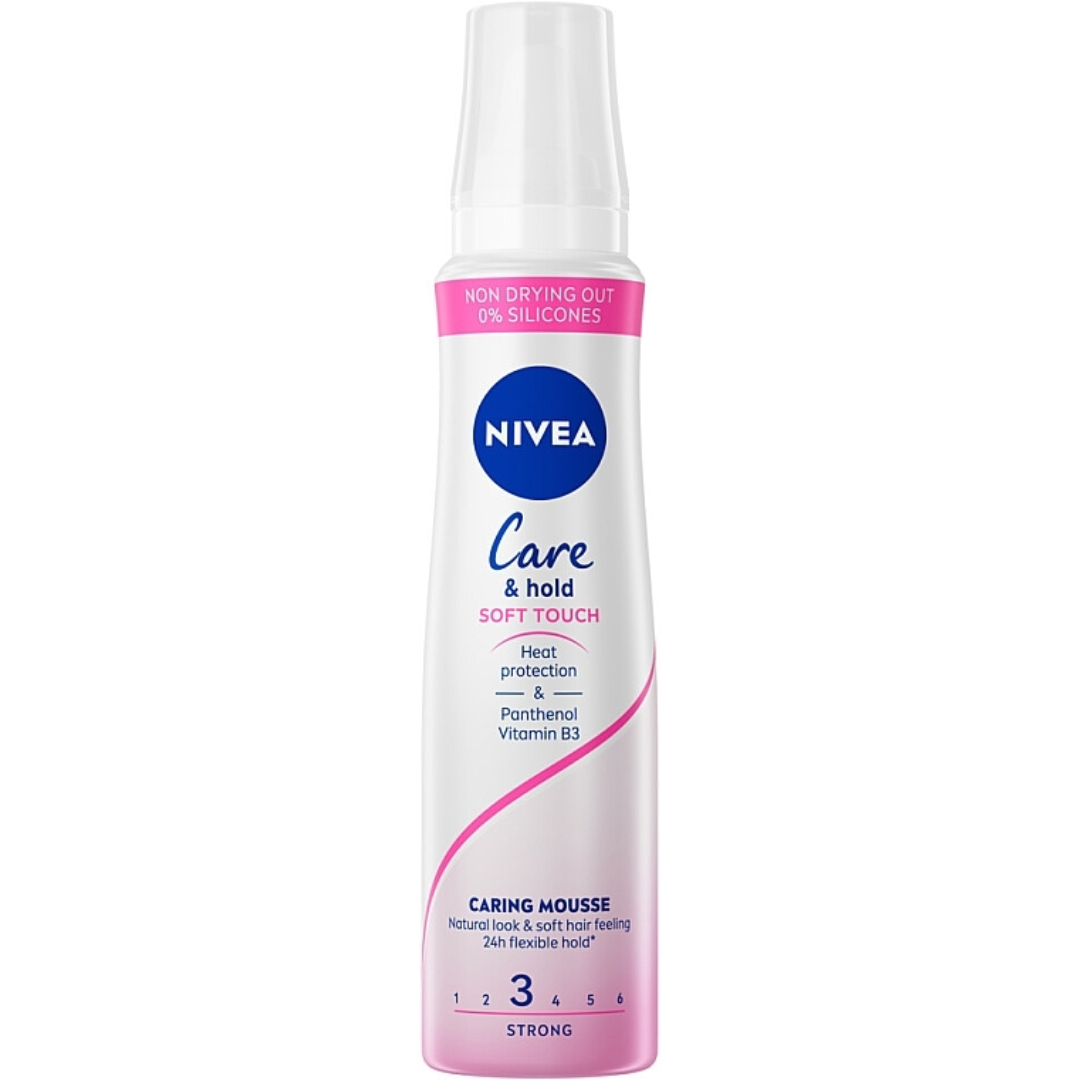 NIVEA Care & Hold Soft Touch Caring Mousse offers the perfect balance between styling and hair care. Designed with heat protection, Panthenol, and Vitamin B3, this mousse provides strong hold (level 3) while keeping your hair soft, flexible, and nourished.