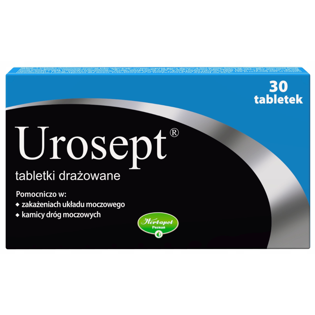Urosept Coated Tablets by Herbapol Poznań are a natural supplement formulated to support the health of the urinary system. Recommended as an adjunct treatment in cases of urinary tract infections (UTIs) and urinary tract stones, Urosept combines herbal ingredients with diuretic and anti-inflammatory properties.